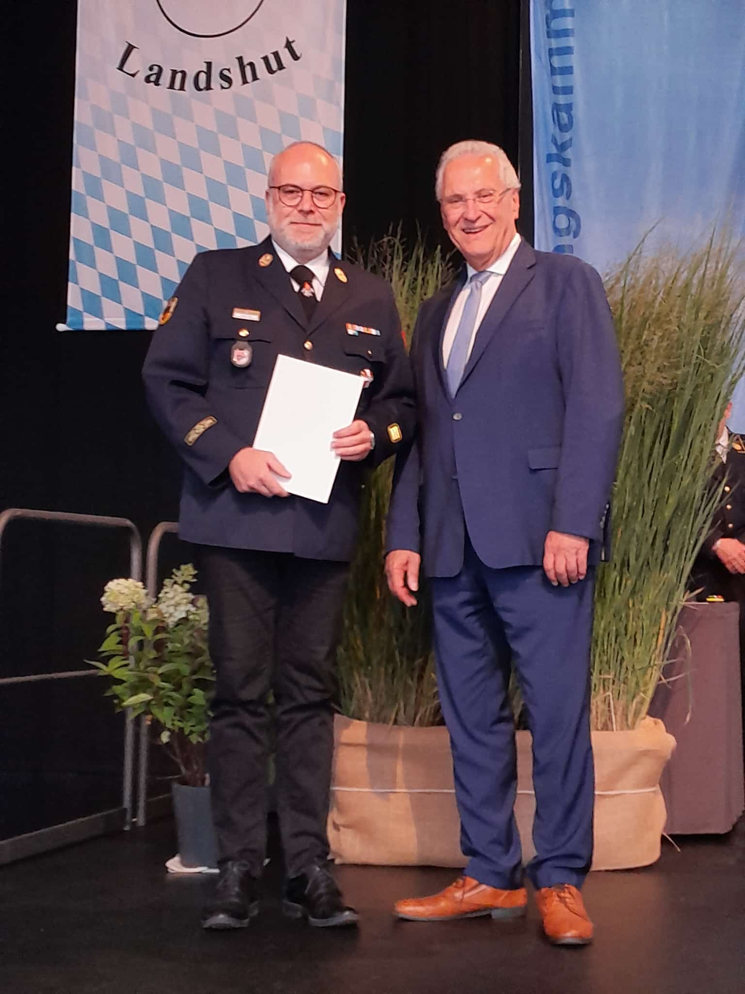 Das Feuerwehr-Ehrenzeichen in Form des Steckkreuzes wird in Bayern nur alle zwei Jahre verliehen. Es würdigt besondere Verdienste um das Feuerwehrwesen oder außergewöhnliche Leistungen im Einsatz – deutlich über das alltägliche Engagement hinaus.